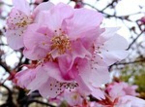 4月の陽気となった今日のウオーキング いつもとちょっと違うコースを歩いてい たら・・・桜が咲いている・・・ あったあった河津桜だ・・こんなところに 1本だけですが濃いピンク色の花びらが・・ 5部咲き程度ですが・・きれいです。 遠くまで行かなくて…